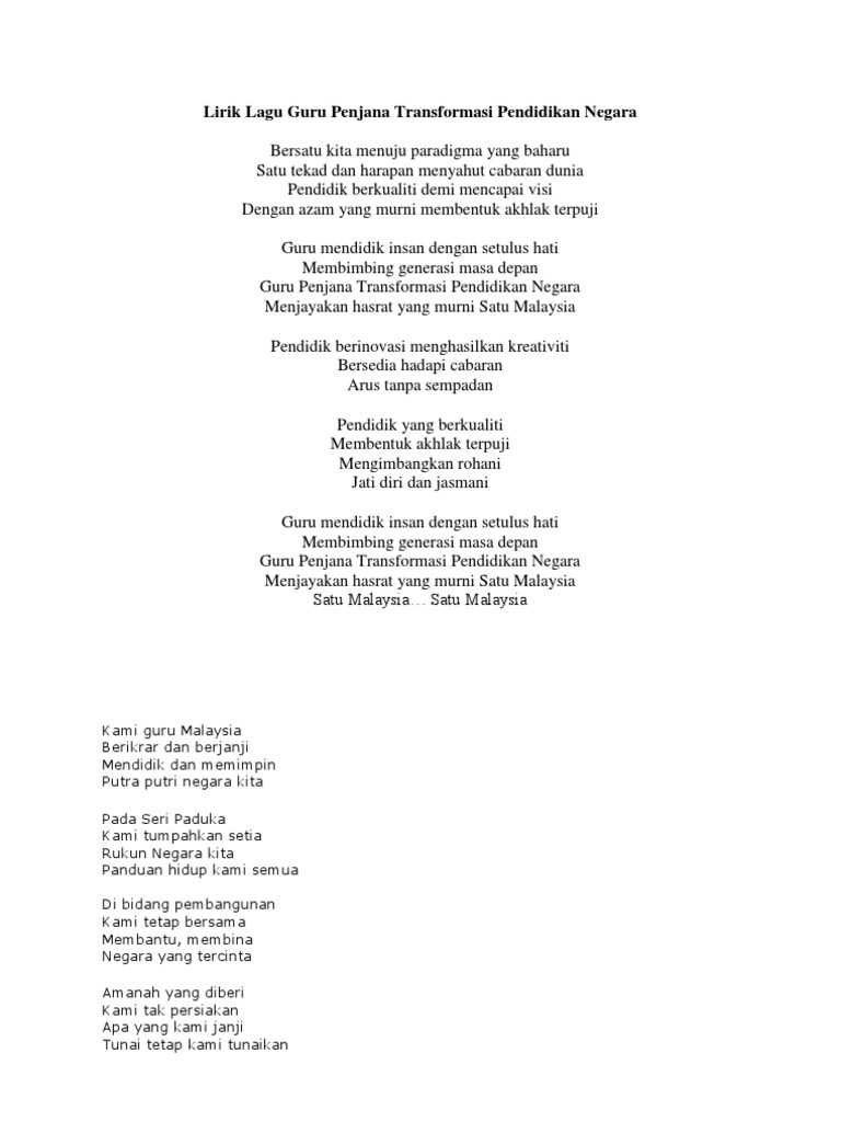 Lirik Lagu Guru Penjana Transformasi Pendidikan Negara Pdf